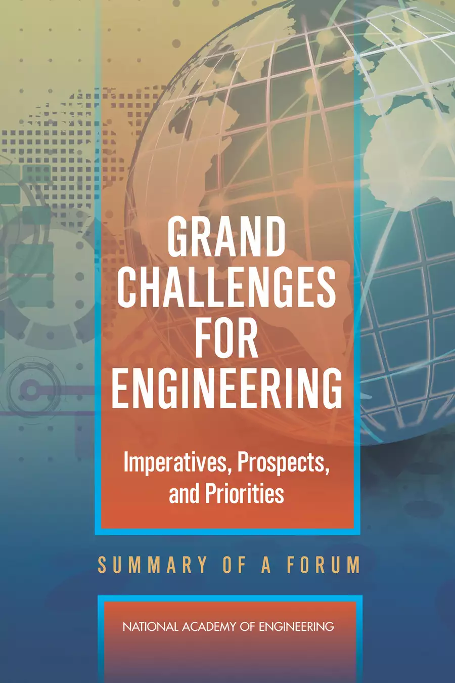 ISBN978-0-309-43896-4 Copyright2016 Grand Challenges for Engineering: Imperatives, Prospects, and Priorities: Summary of a Forum Engineering has long gravitated toward great human ambitions: navigation of the oceans, travel to the moon and back, Earth exploration, national security, industrial and agricultural revolutions, communications, and transportation. Some ambitions have been realized, some remain unfulfilled, ...Authoring institutionNational Academy of EngineeringPublication DateApril 25, 2016 More Info