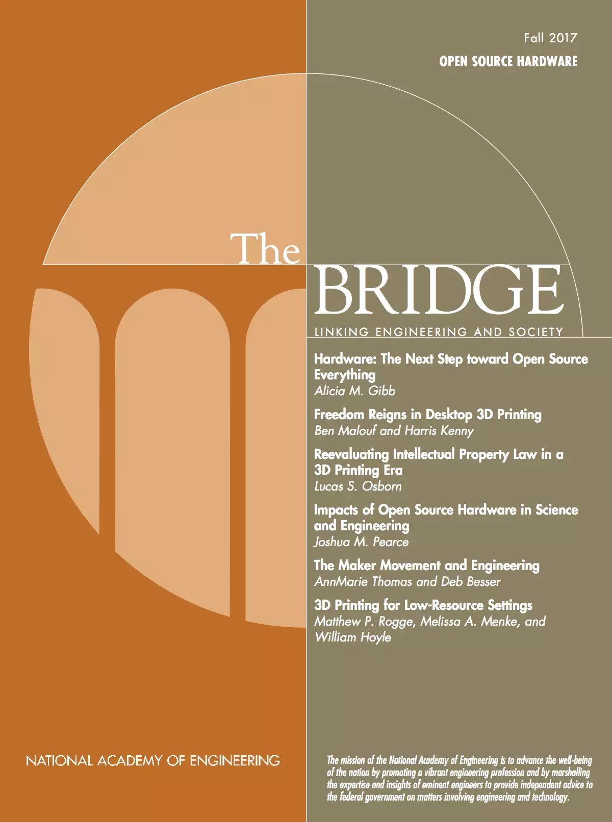 Download PDF Fall Bridge on Open Source Hardware September 15, 2017 Volume 47 Issue 3 The articles in this issue look at how the development and use of free and open source hardware (FOSH or simply “open hardware”) are changing the face of science, engineering, business, and law. 3D Printing for Low-Resource Settings Friday, September 15, 2017 Author: Matthew P. Rogge, Melissa A. Menke, and William Hoyle 3D printing has the potential to produce many needed items in low-resource settings, where lack of infrastructure and weak manufacturing capacity make local production impractical, and high tariffs, unreliable supply chains, and economic instability make importation costly. With lower costs and fewer barriers to entry, 3D printing can create opportunities for small businesses to enter markets producing and selling 3D products. The ability of 3D printing to align local production with global information sharing can be transformational. 3D printers are engines for innovation and can help local designers work together to create solutions to problems faced by their communities. Further, the use of open source designs can -create scale in a way that is fast and free. We review the work of TechforTrade—a UK -charity focused on bridging the divide between emerging technology, international trade, and economic -development—in its use of 3D printing for development. We also summarize key areas that must be addressed to advance this potential (Birtchnell and Hoyle 2014). Affordable 3D Printing: The Retr3D Printer TechforTrade developed the Retr3D printer with the goal of designing an open source 3D printer that is low cost and can be locally manufactured with a minimal number of imported parts (figure 1). To achieve this goal, parts typically found in 3D printer designs—such as linear bearings, smooth steel rods, and specialty aluminum extrusions—have been removed from the Retr3D design. Instead, locally available deep groove ball bearings and square steel tubing are used. Figure 1 In many developing countries, machines introduced as part of a project are later abandoned after breakdowns occur. The causal factors for their abandonment can be complex, but local ownership and support can help prevent the same fate for 3D printers. Local manufacture is an important step in ensuring that machines stay in operation. Building locally ensures that there is a location in country where replacement parts can be obtained as well as someone with the necessary skills to make repairs. And open source design means that anyone with a Retr3D printer has access to the information needed to keep it running. Global Configurability The Retr3D printer design is parametric and can be configured using global variables and equations to accommodate the variation in raw materials between different locations. For example, the square tubing used for the printer’s frame and linear motion system vary in dimension by as much as 3 mm from country to country, so making tight-fitting sockets to fit the tubing requires slightly different 3D-printed parts for each location. It was particularly important to be able to use components reclaimed from discarded electronics, such as motors, power supplies, and fans, when available. -Modern computer-aided design (CAD) software with parametric capabilities can easily handle such jobs: adjusting parameters from one country to the next, or even from one printer to another, is just a matter of inputting the dimensions. Field-Tested Durability The current version of the Retr3D printer is robust. Testing of initial Retr3D designs and other RepRap printers showed that many were sensitive to transport on rough roads. Loss of calibration and damage were common. By adopting a design with a stiff welded steel frame, the Retr3D printer has proven to be much more durable. Furthermore, the construction of the printer frames can be easily outsourced to local welding shops. Open Source Electronics Use of open source electronics has helped to reduce the printer’s cost and improve its -maintainability. RAMPS 1.4 electronics are commonly used with RepRap-style printers, and their popularity has helped to make them both low cost and widely available. The electronics on a Retr3D printer can be entirely replaced for $31 and, thanks to the modular design of RAMPS, if there is damage to only one component it can be easily changed for between $2.50 and $12.00. With proprietary 3D printers, replacement parts generally cost far more—if they are even available. Local Filament Production Nearly all low-cost open source 3D printers that are robust and easy to use are fused-filament fabrication (FFF) machines, which use 3 mm or 1.75 mm diameter plastic filament as their raw material. Filament is typically produced on an industrial scale and needs to be imported in developing countries where the market is quite small. This importation can be costly and time consuming and can lead to unpredictability in the production of 3D-printed goods. TechforTrade has been developing a low-cost, small-scale means for producing 3D printer filament from postconsumer polyethylene terephthalate (PET) bottle flake. PET plastic works well with FFF printers and waste PET is readily available in nearly any location on the -planet. Not only does this help to reduce the challenges of import duties and unpredictable supply chains, but it also allows for value to be added locally to the waste plastic. Postconsumer PET has proven significantly more difficult to process into filament than other plastics readily available in the waste stream—because of its high melt temperature, low melt viscosity, hygroscopicity, susceptibility to hydrolysis, and crystallization -behavior—and designing a low-cost solution has been challenging. TechforTrade explored the use of high-density polyethylene (HDPE) and acrylonitrile butadiene styrene (ABS). HDPE is easy to obtain and producing filament with it is relatively easy, but it tends to shrin