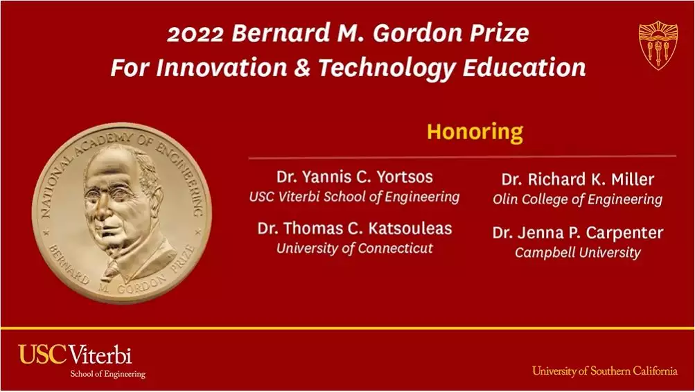 2022 Bernard M. Gordon Prize for Innovation in Engineering and Technology Education https://www.nae.edu/gordon2023/ PostedJanuary 6, 2022