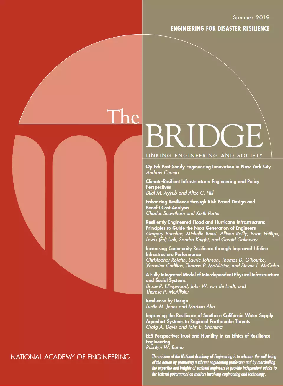 Download PDF Summer Bridge Issue on Engineering for Disaster Resilience July 1, 2019 Volume 49 Issue 2 The articles in this issue present examples of engineering innovation to develop resilient infrastructure. A Fully Integrated Model of Interdependent Physical Infrastructure and Social Systems Monday, July 1, 2019 Author: Bruce R. Ellingwood, John W. van de Lindt, and Therese P. McAllister Common to the many definitions of resilience in the literature and in policy statements is the notion that resilience is the ability to prepare for and adapt to changing conditions and withstand and recover rapidly from disruptions. The performance of the built environment and the support of social, economic, and public institutions are essential for a community’s immediate response and long-term recovery after a disruptive natural hazard event. This article describes research in the Center for Risk-Based Community Resilience Planning, which is sponsored by the National Institute of Standards and Technology (NIST). The Center’s objective is to advance measurement science to (a) understand the factors that make a community resilient, (b) assess the -likely impacts of hazards on communities, and (c) develop risk-informed decision strategies that optimize planning for and recovery from natural hazard events. Research has already laid the groundwork for advances in community resilience science and implementation. Introduction and Background The resilience of a community is determined by its ability to return to a level of normalcy within a reasonable time after a disruptive hazard event; it reflects the community’s preparedness and capacity to respond to and recover from damage to physical, social, and economic systems. Civil infrastructure, on which the economic and social well-being of any community depends, is susceptible to damage due to natural hazards such as hurricanes, floods, tornadoes, earthquakes, and wildland-urban-interface fires. Significant damage may occur even from hazard events with less than “design-level” forces, and may produce disproportionate economic and social -losses, especially for lower-income households, the elderly, and other vulnerable segments of society. The potential exists for even larger US losses due to shifts of population and economic development to hazard-prone coastal regions, increasing population density in urban areas, and the ever-increasing interdependence of physical, social, and economic networks. Current Practices for Resilience of the Built Environment The resilience of communities has garnered significant attention from practitioners, researchers, and policy-makers over the last decade. Earthquakes in Haiti, Chile, New Zealand, and Japan, Superstorm Sandy in 2012, and more recent hurricanes and wildfires in the United States have revealed the importance of mitigation, response, and recovery policies that focus on the resilience of the community as a whole, rather than on the safety and functionality of individual civil infrastructure facilities. Resilience assessment has become a national imperative (NRC 2012; White House 2013) not only in the United States but in Europe and countries in the Asia-Pacific Rim. A community’s resilience needs and objectives, particularly those related to postdisaster functionality and recovery, are not generally reflected in the codes, standards, and other regulatory documents that engineers typically apply in designing individual facilities for natural hazards (e.g., ASCE 2016; ICC 2018). While the performance of individual facilities (e.g., buildings, bridges, buried piping, electrical substations) and infrastructure systems (e.g., electrical, gas, and water distribution systems) during specific natural hazards is reasonably well understood, there has been less attention to the fact that such facilities and systems are interconnected and interdependent. Natural hazards have varying temporal and spatial scales and are highly uncertain in occurrence and intensity. Similarly, while each facility and infrastructure system has its own characteristic response to a natural hazard, the performance of these systems during and after disruptive hazard events is positively correlated because of the interconnected nature of their functions in the community and the extended spatial scale of the event. These spatiotemporal correlations are not reflected in current risk and loss estimation platforms. A New Approach to Community Resilience In light of the numerous uncertainties associated with the performance of community infrastructure, a new risk-informed decision-making approach to community resilience assessment and enhancement is essential (Lounis and McAllister 2016). The new approach should reflect the interdisciplinary nature of the problem and the complex interdependencies among the physical, social, and economic systems in a community. The integrated effects of physical and social infrastructure performance on the resumption of community normalcy after a hazard event and the uncertainties in recovery are depicted by figure 1 (see also Bruneau et al. 2003). Given the many dimensions of community resilience, this curve may be difficult to understand. Figure 1 Furthermore, most research on community resilience in the past two decades has focused on the impacts of severe earthquakes on physical infrastructure (e.g., -Bruneau et al. 2003; Koliou et al. 2018; Mieler et al. 2015). In recent years, attention has shifted to other natural hazards, including those that might be impacted by climate change (ASCE 2015). Introducing the Center for Risk-Based Community Resilience Planning The Center for Risk-Based Community Resilience Planning (the Center; http://resilience.colostate.edu/), headquartered at Colorado State University in Fort Collins, was established as a Center of Excellence by NIST in 2015. The Center involves a dozen universities and has benefited from the participation of more than 100 investigators (faculty, gradu