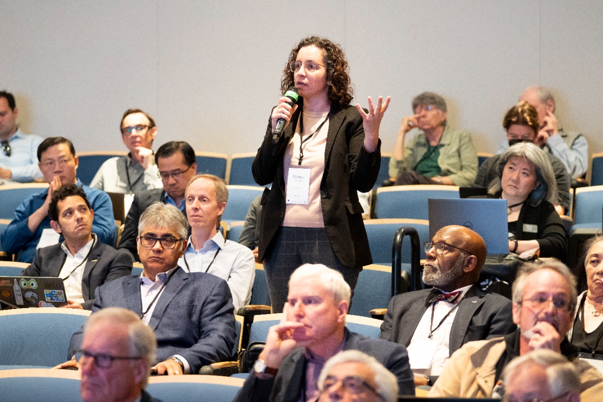 The day began with a welcome session in UC Berkeley’s Jarvis Auditorium. Tsu-Jae King Liu, dean of the College of Engineering at UC Berkeley and incoming NAE president, and Carol Burns, deputy laboratory director for research at Lawrence Berkeley National Laboratory, opened the meeting. Their opening was followed by a welcome video message from NVIDIA CEO Jensen Huang and an address from NAE President John L. Anderson, which emphasized the NAE’s role in addressing engineering challenges and opportunities.